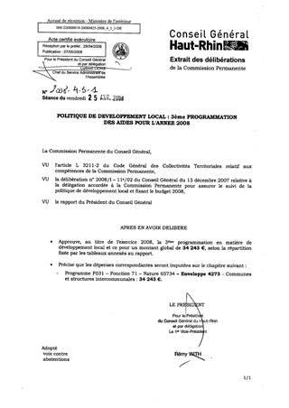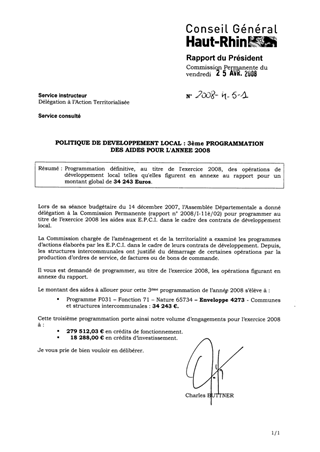 Programmation définitive, au titre de l'exercice 2008, des opérations de développement local telles qu'elles figurent en annexe au rapport pour un montant global de 34 243 Euros.