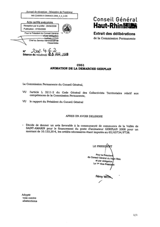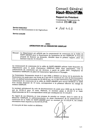 Le Département est sollicité par la communauté de communes de la Vallée de SAINT-AMARIN pour le financement de l’animation de son GERPLAN. Il vous est proposé de financer sa demande, détaillée dans le présent rapport, pour un montant total de 10.133,20 €.