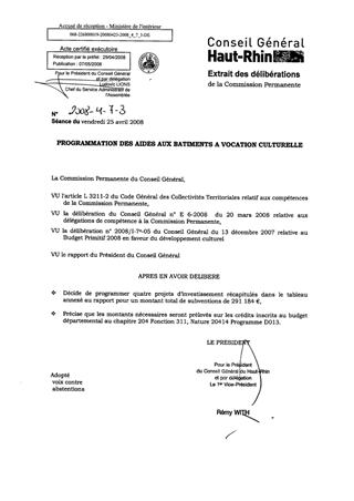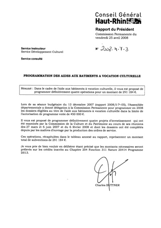 Dans le cadre de l’aide aux bâtiments à vocation culturelle, il vous est proposé de programmer définitivement quatre opérations pour un montant de 291 184 €