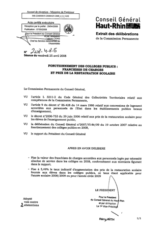 Le présent rapport a pour objet de fixer d’une part le montant des franchises de charges accordées aux personnels logés par nécessité absolue de service dans les collèges en 2008, d’autre part les taux indicatifs d’augmentation des prix de la restauration scolaire fournie aux élèves dans les collèges en 2009.
