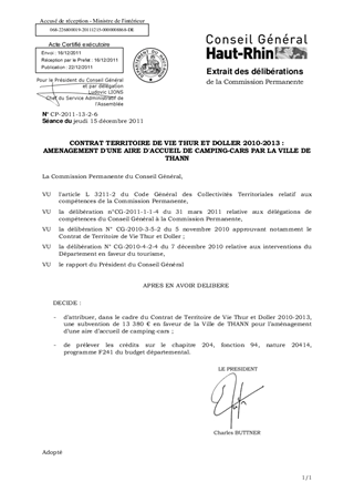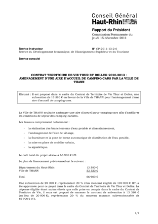 Il est proposé dans le cadre du Contrat de Territoire de Vie Thur et Doller, une subvention de 13 380 € en faveur de la Ville de THANN pour l'aménagement d'une aire d'accueil de camping-cars.