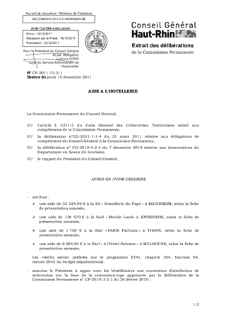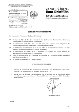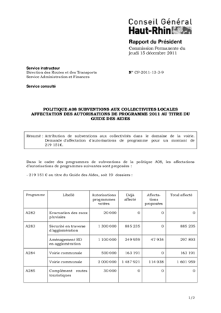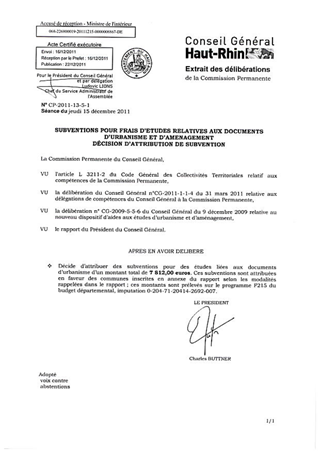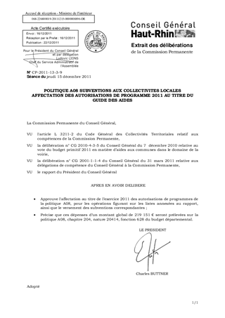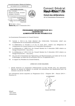 La présente communication a pour objet de présenter les travaux réalisés par la Commission Consultative des Services Publics Locaux du Département du Haut-Rhin, pour l'année 2011.