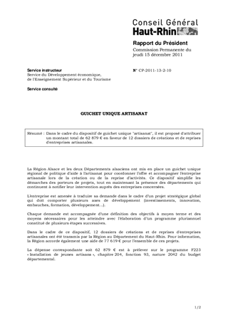 Dans le cadre du dispositif de guichet unique "artisanat", il est proposé d'attribuer un montant total de 62 879 € en faveur de 12 dossiers de créations et de reprises d'entreprises artisanales.