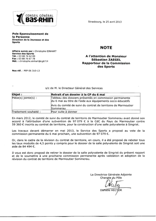 Ce rapport a pour objet la vente du groupe électrogène du Collège de Rosheim et d'informer la commission permanente du produit de la vente du matériel informatique en 2011 et 2012.