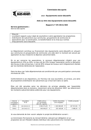 Le présent rapport a pour objet de soumettre à votre approbation les propositions d'attribution de subventions aux communes, groupements de communes et associations pour la construction, la transformation et la mise aux normes d'équipements socio-éducatifs.