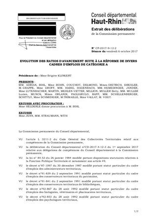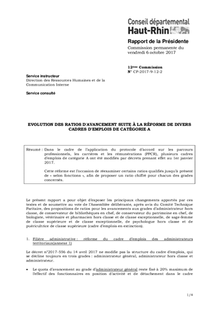 EVOLUTION DES RATIOS D'AVANCEMENT SUITE À LA RÉFORME DE DIVERS CADRES D'EMPLOIS DE CATÉGORIE A
