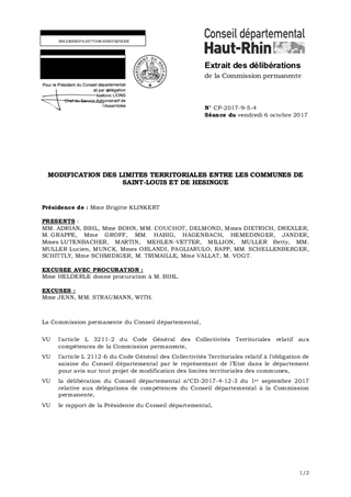 MODIFICATION DES LIMITES TERRITORIALES ENTRE LES COMMUNES DE SAINT-LOUIS ET DE HESINGUE