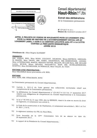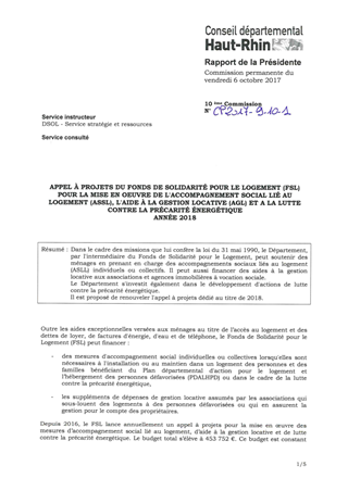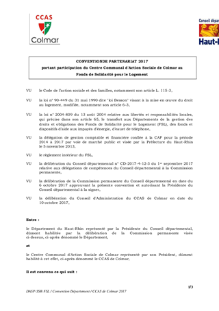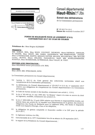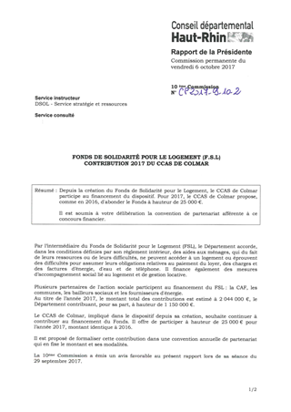 FONDS DE SOLIDARITÉ POUR LE LOGEMENT (F.S.L)CONTRIBUTION 2017 DU CCAS DE COLMAR