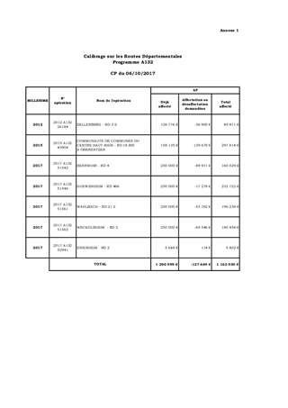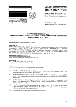 ROUTES DEPARTEMENTALESAFFECTATIONS ET DESAFFECTATIONS D'AUTORISATIONS DE PROGRAMME(PROGRAMMES A132 - A171)