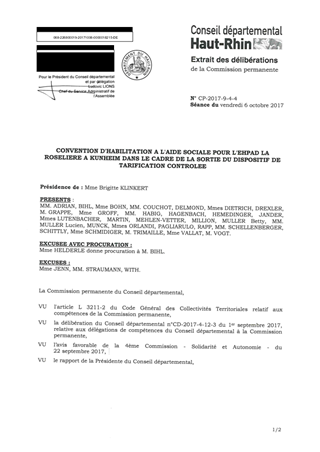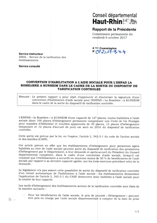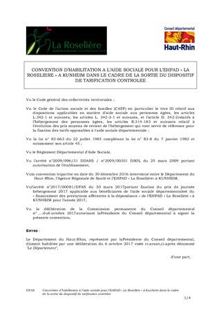CONVENTION D'HABILITATION A L'AIDE SOCIALE POUR L'EHPAD LA ROSELIERE A KUNHEIM DANS LE CADRE DE LA SORTIE DU DISPOSITIF DE TARIFICATION CONTROLEE