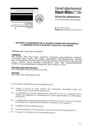 SOUTIEN AU DEMARRAGE DE LA MAISON D'ASSISTANTS MATERNELS A JEBSHEIM POUR UN MONTANT TOTAL DE 2 000 EUROS