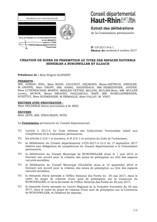 CREATION DE ZONES DE PREEMPTION AU TITRE DES ESPACES NATURELS SENSIBLES A BUSCHWILLER ET ILLZACH
