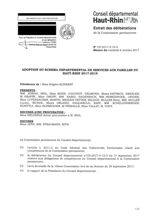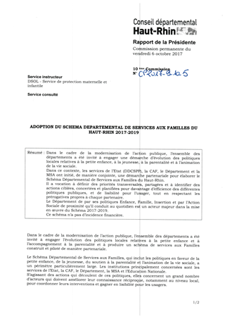 ADOPTION DU SCHEMA DEPARTEMENTAL DE SERVICES AUX FAMILLES DU HAUT-RHIN 2017-2019