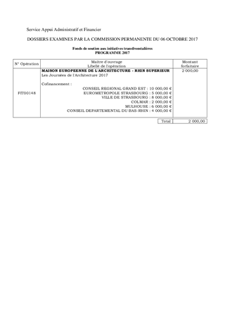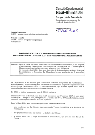FONDS DE SOUTIEN AUX INITIATIVES TRANSFRONTALIERESORGANISATION DE L'EDITION 2017 DES JOURNEES DE L'ARCHITECTURE