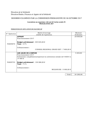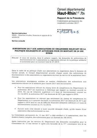SUBVENTIONS 2017 AUX ASSOCIATIONS OU ORGANISMES RELEVANT DE LA POLITIQUE SOLIDARITE ET AUTONOMIE POUR UN MONTANT DE 24 200 EUROS