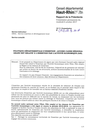 POLITIQUE DÉPARTEMENTALE D'INSERTION : ACCORD CADRE RÉGIONAL GRAND EST RELATIF À L'INSERTION PAR L'ACTIVITÉ ECONOMIQUE (IAE).