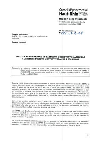 Le présent rapport a pour objet d'accorder une subvention non renouvelable d'aide et de soutien à la création d’une Maison d'Assistants Maternels (MAM) à JEBSHEIM pour un montant total de 2 000 € versée à l’association « Les Petits Pieds » à JEBSHEIM.