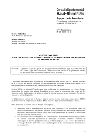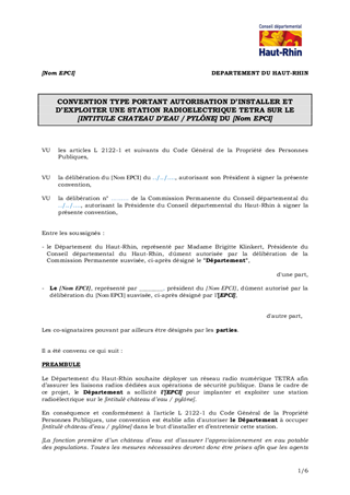Le présent rapport a pour but d’approuver la convention type à passer avec des EPCI dont l’objet est d'autoriser l'installation des antennes et paraboles TETRA sur des bâtiments existants (châteaux d’eau, pylônes...).