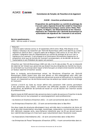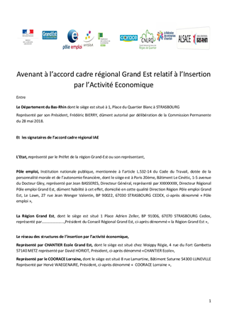 L'accord cadre national conclu le 10 septembre 2015 entre l'Etat, Pôle Emploi et les réseaux nationaux de l'Insertion par l'Activité Economique (IAE) s'est décliné au niveau régional en 2016 et 2017. L'accord cadre de la Région a été conclu le 15 mai 2017 et propose l'intégration des dix Départements au comité de pilotage et de suivi par la signature d'un avenant. Il est proposé à la Commission Permanente d'approuver la proposition ainsi que les termes de l’avenant correspondant, et de décider de donner l'autorisation à son Président de signer cet avenant.