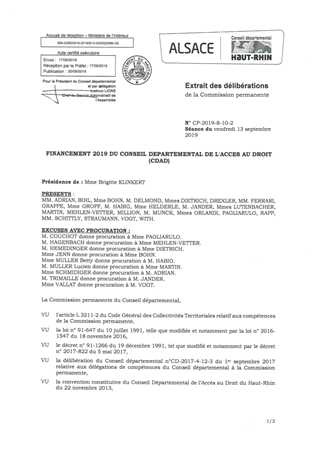 Le présent rapport a pour objet le versement de la contribution financière obligatoire au Conseil départemental de l’accès au droit (CDAD) au titre de l’année 2019 pour un montant de 1 006 €, en un versement unique.