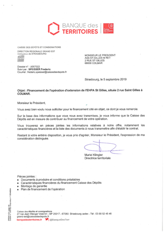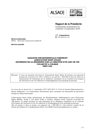 Il vous est proposé d'octroyer à l'association Saint Gilles de Colmar une garantie d'emprunt à hauteur de 100 % relative à un prêt de 1 500 000 € dans le cadre du financement de l'extension de la résidence consistant en la création d'un espace de rencontre et de vie collective et l'aménagement d'un parking souterrain.