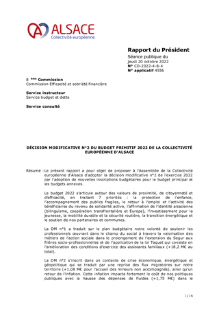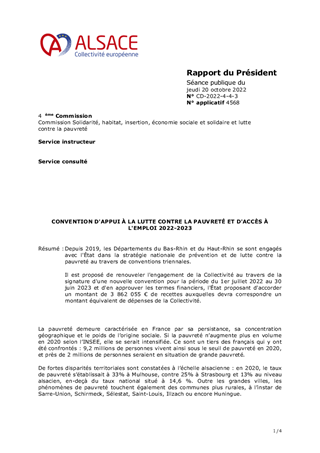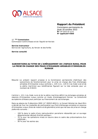 Le présent rapport vise à répartir le fonds départemental de péréquation des taxes additionnelles aux droits d'enregistrement 2022 conformément aux modalités définies par délibération du Conseil de la Collectivité européenne d'Alsace du 18 octobre 2021.