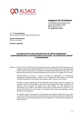 Le présent rapport a pour objet d’approuver l’attribution des subventions de fonctionnement proposées au titre du Fonds d’Intervention Alsacien, selon le détail joint en annexe.