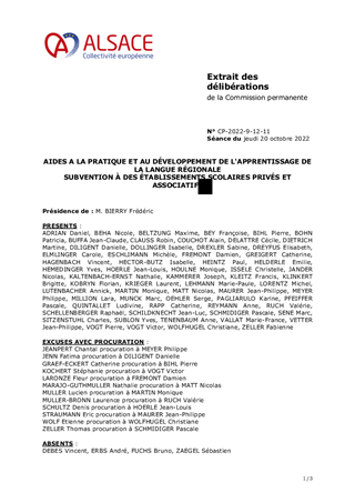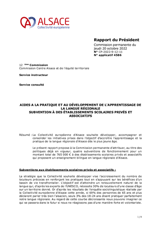 SUBVENTIONS DE FONCTIONNEMENT POUR 2022 AUX ECOLES ET COLLÈGES ALSACIENS POUR LES CLASSES DE DÉCOUVERTE, VOYAGES SCOLAIRES, VISITES MÉMORIELLES