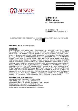 INSTALLATION DE L'OBSERVATOIRE DE LA PROTECTION DE L'ENFANCE D'ALSACE