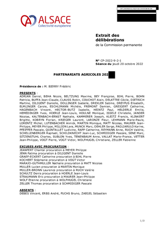 L’agriculture représente un enjeu majeur pour l’économie alsacienne, mais également pour l’aménagement, le dynamisme et la diversité du territoire. Les exploitants agricoles produisent nos aliments, entretiennent nos paysages, créent de l’emploi et contribuent à la vitalité de nos territoires ruraux. Les enjeux de ces partenariats sont donc nombreux et variés. La politique agricole de la Collectivité européenne d’Alsace, menée en étroit partenariat avec la Chambre d’Agriculture Alsace, vise à promouvoir une agriculture alsacienne compétitive, durable, respectueuse de l'environnement, génératrice d’emploi et de richesses qui s'inscrit dans un contrat cadre 2022-2024. Il est proposé d'attribuer, au titre de 2022, des subventions de fonctionnement pour un montant total de 27 500 € à l'Organisme de sélection de la race Vosgienne, aux Jeunes Agriculteurs du Haut-Rhin, à l'association Bio en Grand-Est et aux Éleveurs Bovins du Haut-Rhin.