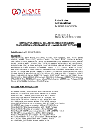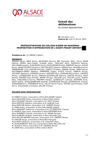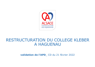 RESTRUCTURATION DU COLLEGE KLEBER DE HAGUENAU PROPOSITION D'APPROBATION DE L'AVANT-PROJET DEFINITIF