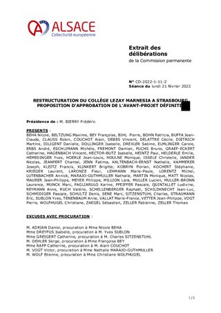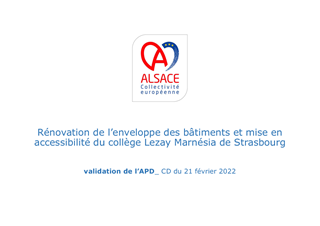 RESTRUCTURATION DU COLLÈGE LEZAY MARNESIA A STRASBOURG PROPOSITION D'APPROBATION DE L'AVANT-PROJET DÉFINITIF