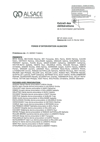 Le présent rapport a pour objet d’approuver l’attribution des subventions de fonctionnement proposées au titre du Fonds d’Intervention Alsacien, selon le détail joint en annexe.
