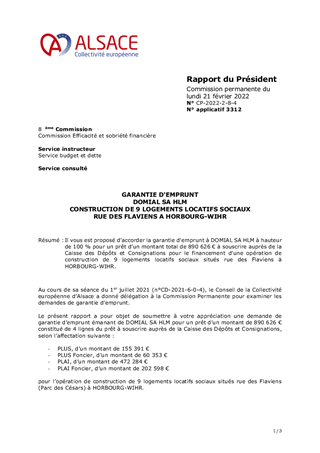 GARANTIE D'EMPRUNT DOMIAL SA HLM CONSTRUCTION DE 9 LOGEMENTS LOCATIFS SOCIAUX RUE DES FLAVIENS A HORBOURG-WIHR