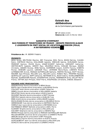 GARANTIE D'EMPRUNT SAS PIERRES ET TERRITOIRES DE FRANCE - GROUPE PROCIVIS ALSACE 2 LOGEMENTS EN PRET SOCIAL DE LOCATION ACCESSION (PSLA) A KAYSERSBERG-VIGNOBLE
