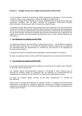 BUDGET PRIMITIF 2022 DYNAMIQUES ECONOMIQUES, TOURISTIQUE, AGRICOLE, EMPLOI ET TRANSITIONS ÉCOLOGIQUES ET CLIMATIQUES