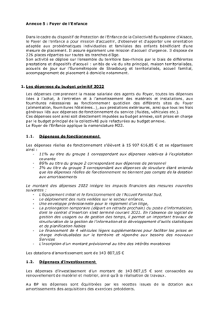 La jeunesse est notre avenir, elle constituera les forces vives de demain. Elle mérite d’être considérée à sa juste place. Aussi, pour accompagner notre jeunesse, lui donner toutes les chances d’accéder à une vie adulte citoyenne, autonome et responsable, la collectivité européenne d’Alsace a affiché 3 priorités (parmi les 7) dans les orientations budgétaires s’y rapportant : • La protection de l’enfance, avec une augmentation très significative des moyens ; • Les investissements dans les collèges, avec notamment la création de nouveaux bâtiments et des restructurations lourdes ; • Le bilinguisme et la coopération transfrontalière pour l’ouverture économique et culturelle transrhénane. La Collectivité européenne d’Alsace investit fortement dans sa jeunesse, pour préparer l’avenir, en mobilisant en 2022 près de 300 M€ en fonctionnement, soit près de 20% de ses dépenses de fonctionnement. Plus de 3 000 agents (près de la moitié des effectifs) participeront activement à la mise en œuvre de ces politiques publiques. Pour donner quelques exemples de l’importance de la jeunesse, au quotidien : • 915 agents pour l’enfance, qui accompagnent les familles via par exemple la protection maternelle et infantile (suivi des grossesses, bilan de santé durant les premières années de l’enfant…), l’instruction des informations préoccupantes (alertes sur des carences ou maltraitances), l’aide aux familles dans l’éducation (mesures d’aide éducative à domicile ou dans des lieux spécifiques), l’accompagnement des enfants placés dans des structures spécifiques ou auprès des familles d’accueil ; • 600 assistants familiaux qui accueillent chez eux des enfants placés ; • 1 300 agents techniques des collèges, qui assurent le nettoyage, l’entretien, la maintenance des collèges et assurent le service de restauration. De manière plus spécifique pour l’année 2022, au-delà des missions quotidiennes de service public : Concernant la protection de l’enfance, l’augmentation du nombre de mineurs faisant l’objet d’une mesure de protection est en augmentation constante (+3,2% par an depuis une dizaine d’année). Pour faire face, la Collectivité a ajusté ses budgets en conséquence mais sans enrayer cette croissance. Depuis 2021, la Collectivité a contractualisé avec l’Etat pour renforcer les mesures de prévention pour limiter le plus possible l’apparition et la dégradation de situations difficiles. En 2022, le budget s’élèvera à 246,6 M€, soit une augmentation de +4,4 M€. Au-delà de la poursuite des efforts sur la prévention, des places supplémentaires seront créées, conformément aux objectifs présentés dans les orientations budgétaires, à savoir 150 places d’internat et 150 places en mesures éducatives renforcées : une partie d’entre-elles seront déployées dès 2022. A noter que le budget n’intègre pas encore les dépenses supplémentaires consécutives à l’adoption de la loi relative à la protection de l’enfance. Des ajustements en décision modificative seront nécessaires pour tenir compte notamment de la revalorisation des métiers d’assistants familiaux. Concernant les collèges, des investissements sur les bâtiments (portés dans la 8ème commission) sont nécessaires pour créer des conditions favorables d’accueil (création de 5 nouveaux collèges, reconstruction de 2 collèges). La collectivité poursuivra également son engagement principalement au travers de dotations aux collèges (pour assurer les charges courantes), d’aides particulières (voyages scolaires, actions éducatives spécifiques) et de l’équipement informatique. Par ailleurs, la Collectivité s’engage pour la jeunesse au-delà des collégiens : prévention (violences intrafamiliales, harcèlement…), citoyenneté (gestes qui sauvent, rôle des élus et des collectivités…), soutien aux activités socioéducatives. Au total, la Collectivité mobilisera 36,7 M€ en fonctionnement et 4,6 M€ en investissement. La Collectivité entend jouer pleinement son rôle en matière de bilinguisme conformément à la stratégie votée en mai 2021, en allouant des moyens significatifs (3,3 M€) autour de 4 axes (apprentissage en immersion, animations en temps périscolaire et extrascolaire, mutualisation des moyens, et visibilité dans l’espace public). Le projet phare de cette stratégie est le projet de l’ouverture d’une école de la langue régionale (allemand standard et ses variantes dialectales) par canton d’ici la fin du mandat. De nouvelles classes bilingues seront ouvertes dès 2022. Pour mettre à jour et affiner les données relatives à la pratique de la langue locale, une étude sociolinguistique sera réalisée en 2022. En outre, à la faveur de la loi Alsace, la Collectivité européenne d'Alsace mettra en place un comité stratégique pour l’enseignement de la langue régionale en Alsace qui sera chargé de définir une stratégie de promotion de l’allemand, dans sa forme standard et ses variantes dialectales, d’évaluer son enseignement, d’agir sur l’attractivité des métiers, et de favoriser l’interaction avec les politiques publiques éducatives et culturelles. Enfin, la Collectivité poursuivra ses actions en faveur du sport (4,2 M€ en fonctionnement et 0,7 M€ en investissement), à la fois en promouvant le sport de haut niveau et les grands événements sportifs qui font rayonner l’Alsace et qui donne envie aux jeunes de s’investir dans des pratiques sportives, et en soutenant également la pratique sportive universelle, de tous à tous âges. La Collectivité européenne d’Alsace sera donc au rendez-vous des clubs et associations sportives en proximité.