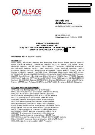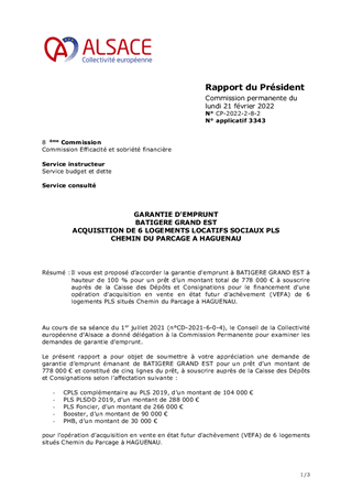 GARANTIE D'EMPRUNT BATIGERE GRAND EST ACQUISITION DE 40 LOGEMENTS LOCATIFS SOCIAUX PLAI ET PLUS CHEMIN DU PARCAGE A HAGUENAU