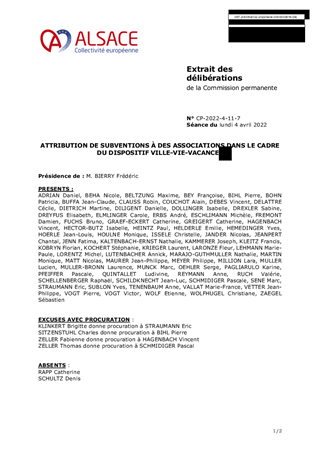 La Collectivité européenne d'Alsace contribue à l'autonomie des jeunes et à leur engagement en soutenant les associations qui développent des actions éducatives. Le présent rapport a pour objet de proposer à la Commission permanente d'attribuer des subventions de fonctionnement pour un montant total de 4 600 € à des associations menant des actions d'éducation à la citoyenneté en quartiers prioritaires de la ville dans le cadre du dispositif Ville-Vie-Vacances.