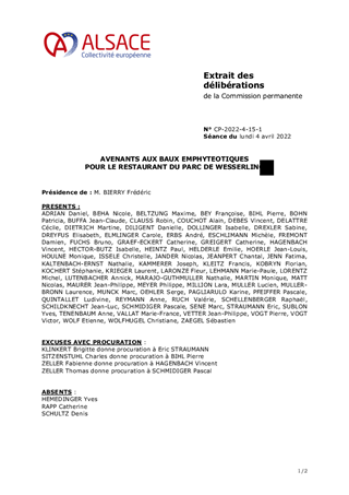 AVENANTS AUX BAUX EMPHYTEOTIQUES POUR LE RESTAURANT DU PARC DE WESSERLING