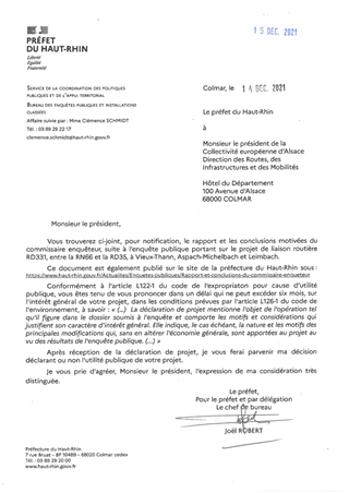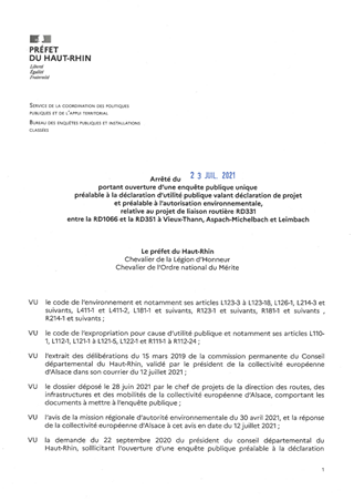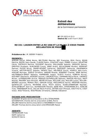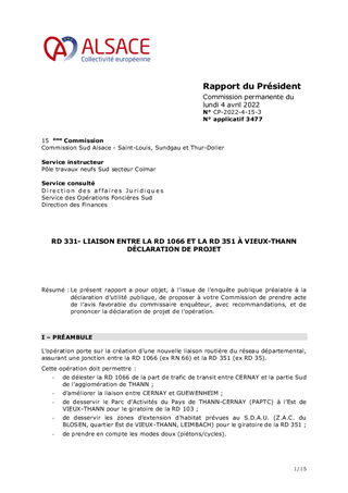 RD 331- LIAISON ENTRE LA RD 1066 ET LA RD 351 À VIEUX-THANN DÉCLARATION DE PROJET