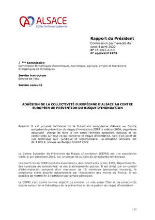 Il est proposé l'adhésion de la Collectivité européenne d’Alsace à l'association FRANCE DIGUES, créée en 2013, afin de permettre à notre collectivité d'intégrer un réseau de gestionnaires de digues et d'ouvrages hydrauliques compte tenu du rôle qu'elle joue déjà dans ce domaine. La cotisation annuelle est de 750 €, prévue au Budget Primitif 2022.