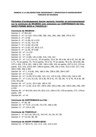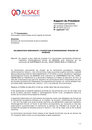 Ce rapport a pour objet de proposer à la Commission permanente d’ordonner l’opération d’aménagement foncier de NEUBOIS avec extension sur les communes de DIEFFENBACH-AU-VAL, SAINT-PIERRE-BOIS et THANVILLE.