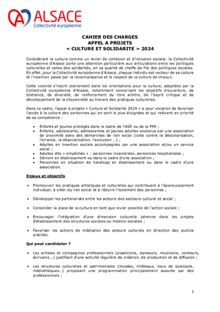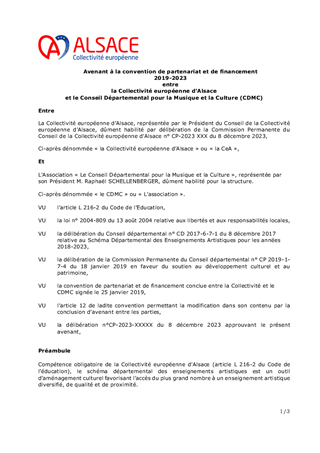 Le présent rapport propose de proroger pour l'année 2024 les schémas départementaux des enseignements et des pratiques artistiques 2018-2023, ainsi que les conventions conclus avec les structures concourant à la mise en œuvre de ces schémas. Il propose également de valider le cahier des charges de l'appel à projets "Culture et Solidarité" 2024.
