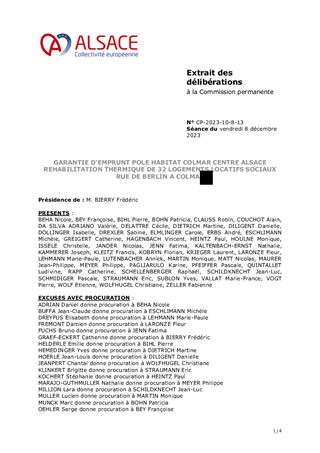 Il vous est proposé d’accorder la garantie d'emprunt à COOPERATIVE CENTRE ALSACE HABITAT à hauteur de 100 % pour un prêt d’un montant total de 91 962 € à souscrire auprès de la Caisse des Dépôts et Consignations pour le financement d'une opération de réhabilitation thermique de 4 logements locatifs sociaux situés 49 rue du Ladhof à COLMAR.