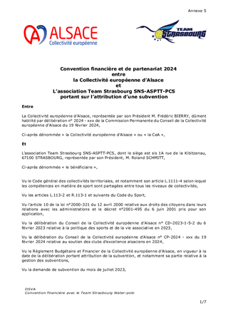 La Collectivité européenne d'Alsace est fortement engagée dans la défense de l’ambition que porte Strasbourg en tant que capitale européenne et des droits de l'Homme. Depuis sa création, elle soutient activement le rayonnement de l'Alsace en Europe et la promotion des valeurs européennes et humanistes en Alsace. Ainsi, dans le cadre de la politique de soutien aux acteurs qui contribuent à renforcer le statut européen de Strasbourg et de l'Alsace, ce rapport propose d’attribuer : une subvention pluriannuelle de fonctionnement au Collège d'Europe de Bruges (81 969 €), pour l'organisation des visites d'études des étudiants à Strasbourg et en Alsace pour les années 2024, 2025 et 2026 ; et une subvention annuelle de fonctionnement à l'Association parlementaire européenne (1 000 €), pour l'organisation des journées de la présidence de l'UE de 2024 en partenariat avec le corps consulaire et diplomatique. Enfin, le rapport propose d’approuver les termes de l’avenant à la convention annexée à la délibération n° CP/2020/391 de la Commission Permanente du Conseil départemental du Bas Rhin du 30 novembre 2020 portant attribution d’une subvention à la Ville de Strasbourg pour l'extension du Lieu d'Europe, afin de modifier le calendrier d'exécution établi par la convention.