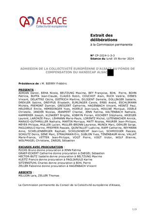 La Collectivité européenne d’Alsace a prévu un budget de 287,9 M€ (+1,3%) pour mener à bien ses ambitions en matière de politique du handicap. Elle vise à mieux accompagner les usagers dans leurs projets, par le respect de délais et la qualité de service, l’amélioration de l’accompagnement humain et des aides techniques, en renforçant l’offre des établissements médico-sociaux. Elle souhaite mener une politique active dans l’accompagnement et le maintien dans l’emploi. Elle favorise l’inclusion accompagnée des enfants en situation de handicap, et le soutien aux aidants. Le présent rapport a pour objet la création du fonds de compensation du handicap Alsace qui viendra se substituer aux deux fonds existants dans le Bas-Rhin et le Haut-Rhin. Ce fonds, auquel il est proposé que la Collectivité européenne d'Alsace adhère et contribue, est destiné à diminuer le reste-à-charge des personnes en situation de handicap quand celles-ci ont un besoin impérieux d’aides techniques pour compenser leur perte d’autonomie dans leur vie quotidienne.