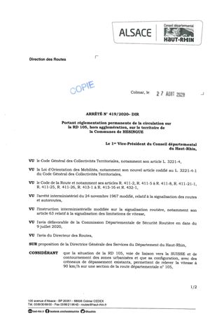 La création de la Collectivité européenne d’Alsace conduit à un travail de convergence de différentes politiques, dont celle de la structuration de son réseau routier. Il convient, en particulier, de tenir compte de l’intégration du réseau routier national et de l’existence d'une numérotation en doublon de certaines routes départementales dans les départements du Bas-Rhin et du Haut-Rhin. En effet, une centaine de routes départementales portent le même numéro dans chacun des deux départements. Le maintien de cette situation conduirait à une confusion dans la gestion de ces axes routiers. Le principe de leur renommage a donc été acté en comité de pilotage Collectivité européenne d'Alsace le 30 novembre 2019. Le présent rapport vous propose d’adopter les principes de numérotation et bornages des routes départementales afin de structurer le réseau routier de la Collectivité européenne d'Alsace.