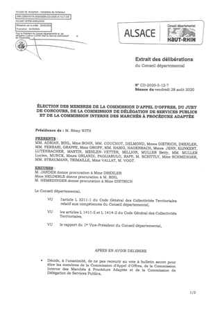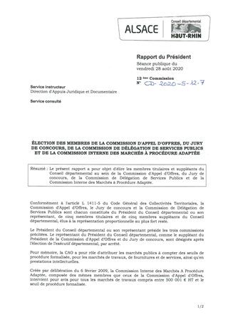 Le présent rapport a pour objet d'élire les membres titulaires et suppléants du Conseil départemental au sein de la Commission d'Appel d’Offres, du Jury de concours, de la Commission de Délégation de Services Publics et de la Commission Interne des Marchés à Procédure Adaptée.
