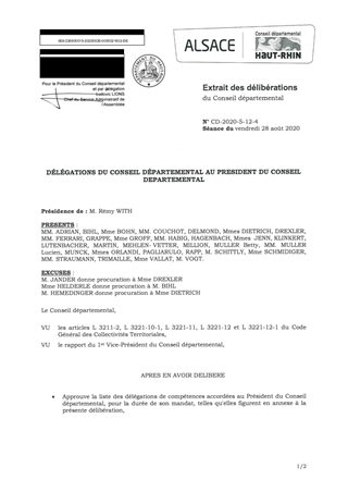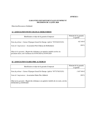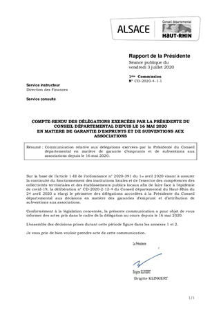 Communication relative aux délégations exercées par la Présidente du Conseil départemental en matière de garantie d’emprunts et de subventions aux associations depuis le 16 mai 2020.